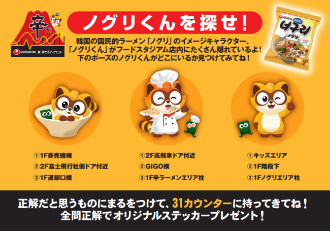 フードスタジアム内にいる30種類のノグリくんの中から特定のノグリくんを探そう!!